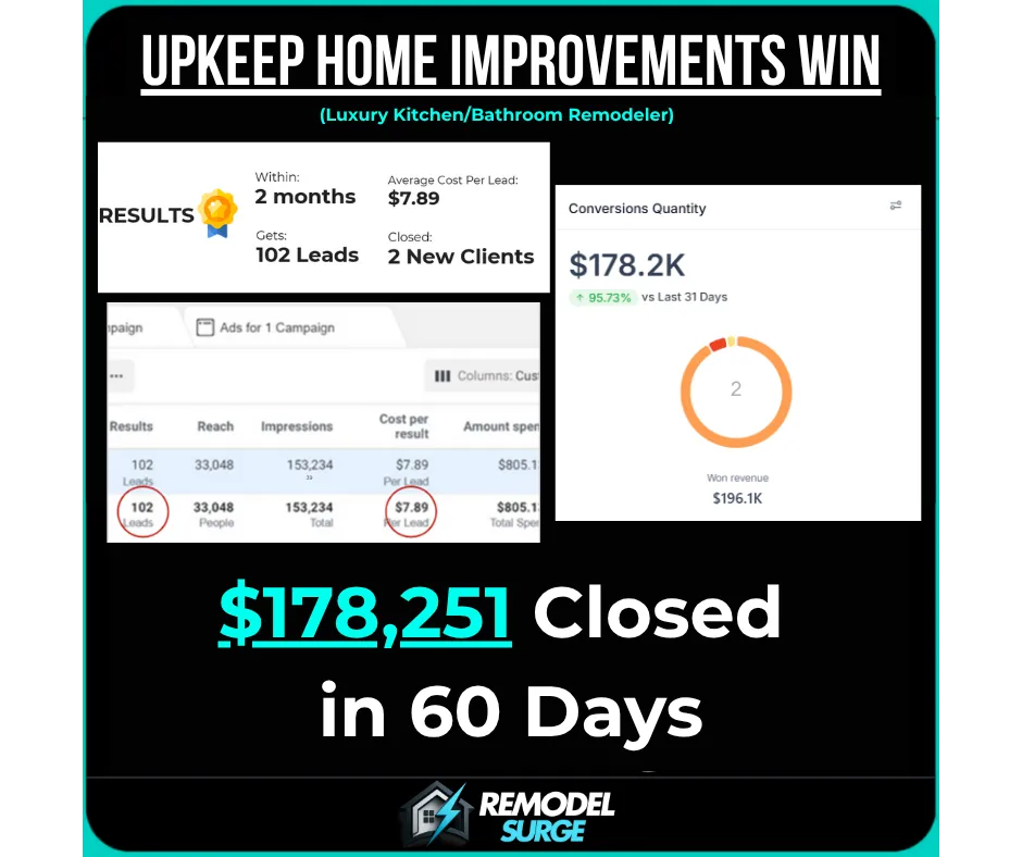Revenue Boost: With only a $4,300 monthly ad budget, they secured $178,000 in project revenue in just 60 days